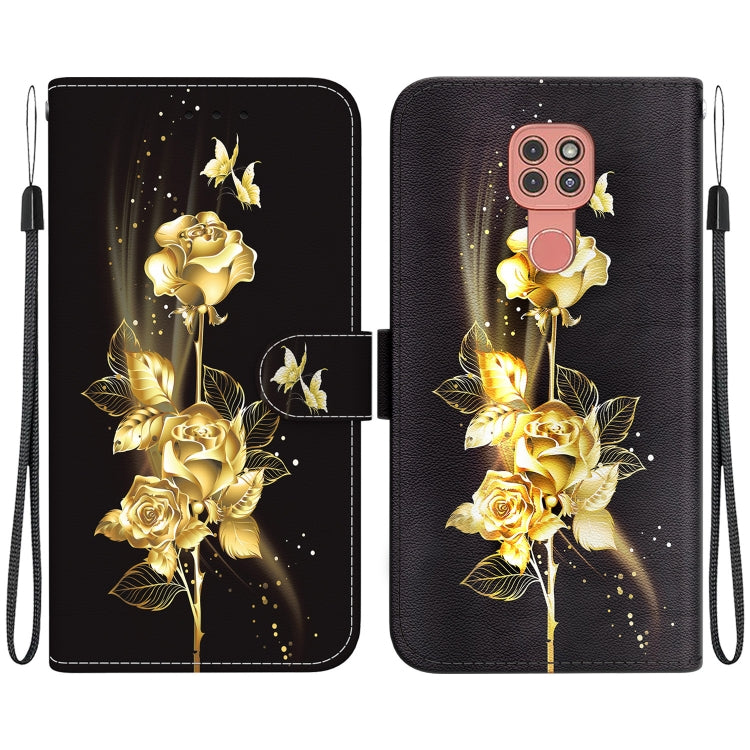 Funda para Motorola Moto G9 Play y E7 Plus de Cuero con Dibujo Coloreado y Textura de Cristal (Mariposa Dorada Rosa)
