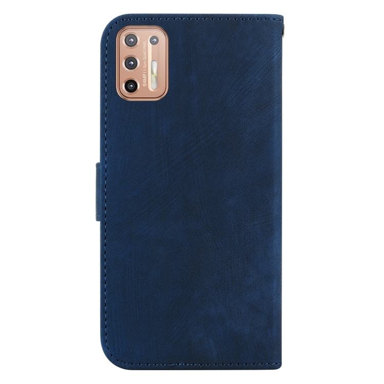 Funda de Cuero para Motorola Moto G9 Plus con Relieve Little Tiger (Azul Oscuro)