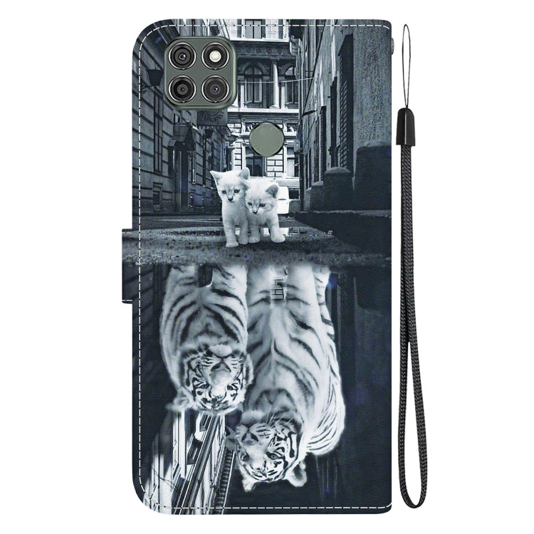 Funda de Cuero para Motorola Moto G9 Power con Dibujo Coloreado Crystal Texture (Reflejo de Tigre Gato)