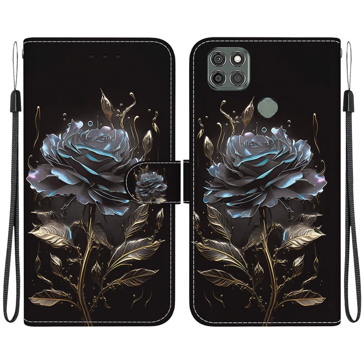 Funda de Cuero para Motorola Moto G9 Power con Dibujo Coloreado (Rosa Negra)