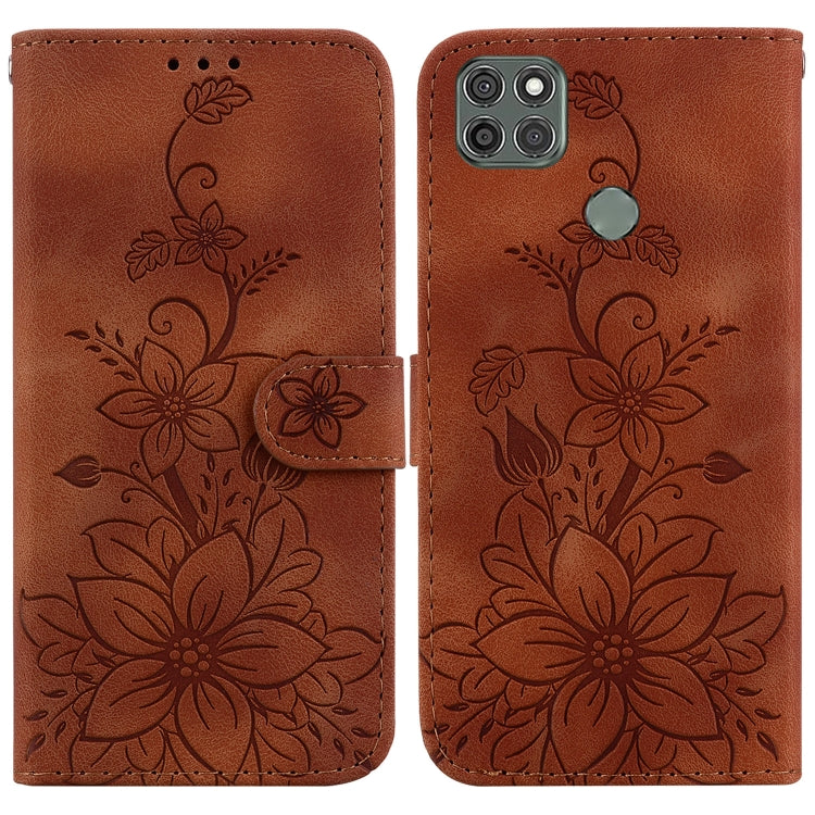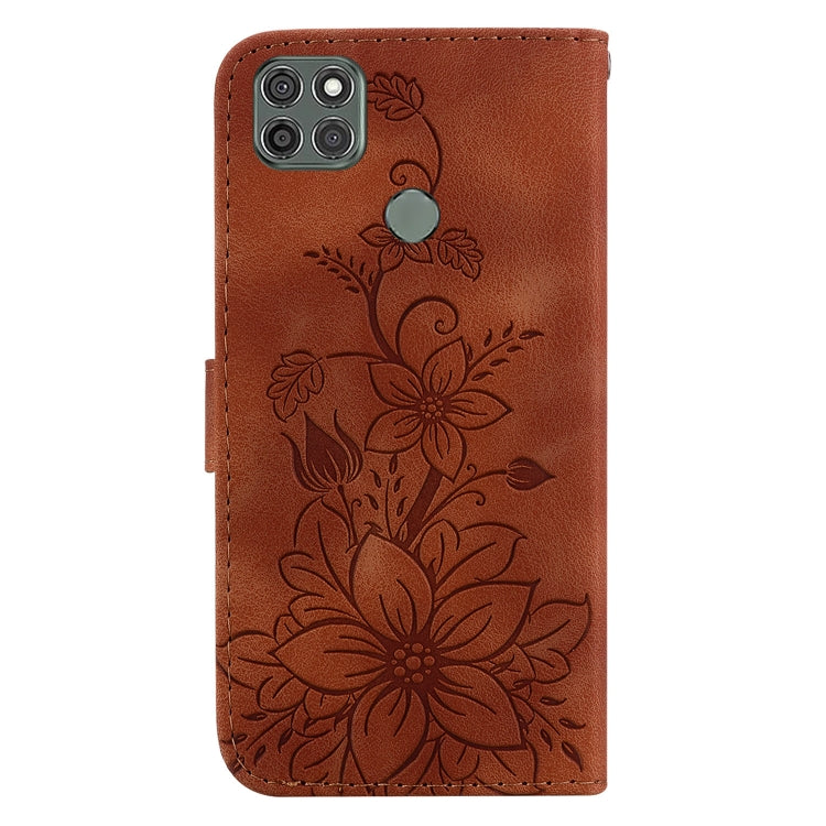 Funda para Motorola Moto G9 Power Lily de Cuero en Relieve (Marrón)