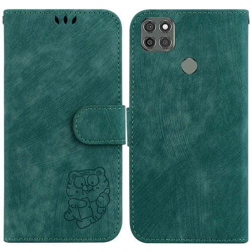 Funda de Cuero para Motorola Moto G9 Power Little Tiger con Relieve (Verde)
