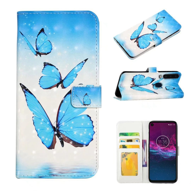 Funda de Cuero para Motorola Moto P40 Power con Dibujo 3D en Relieve (3 Mariposas)