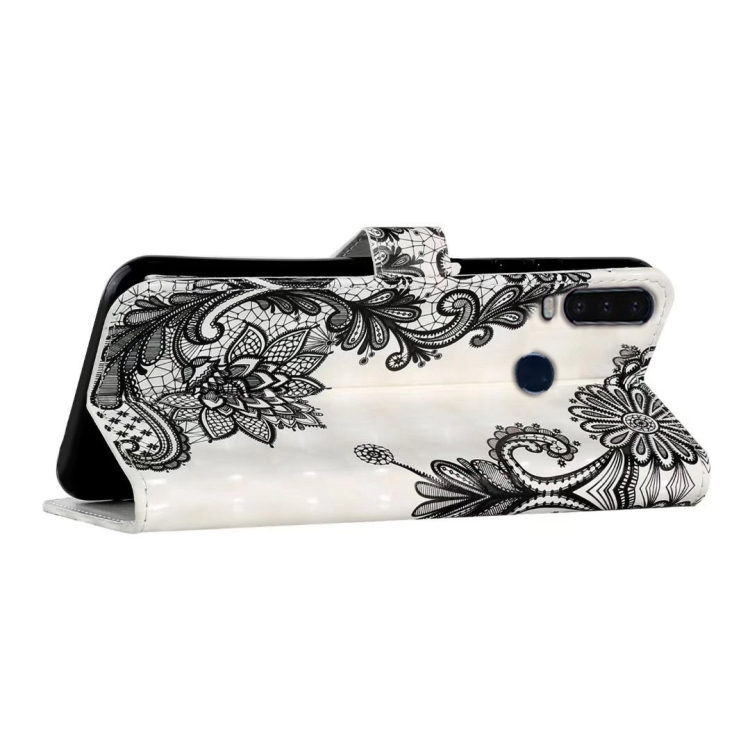 Funda de Cuero para Motorola Moto P40 Power con Dibujo 3D en Relieve (Flor de Encaje)
