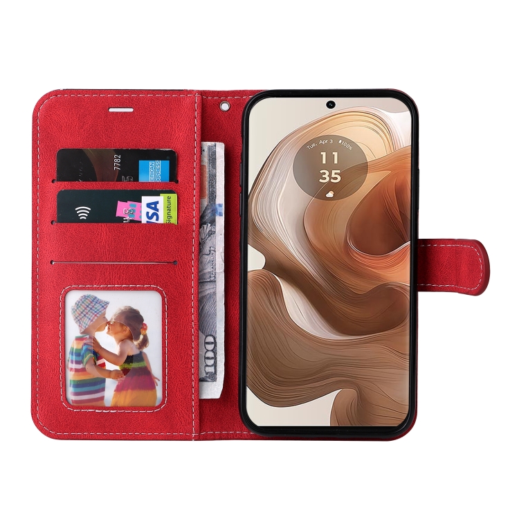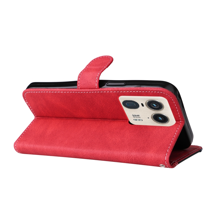 Funda de Cuero para Motorola Moto X50 Ultra con Empalme de Tres Colores (Rojo)