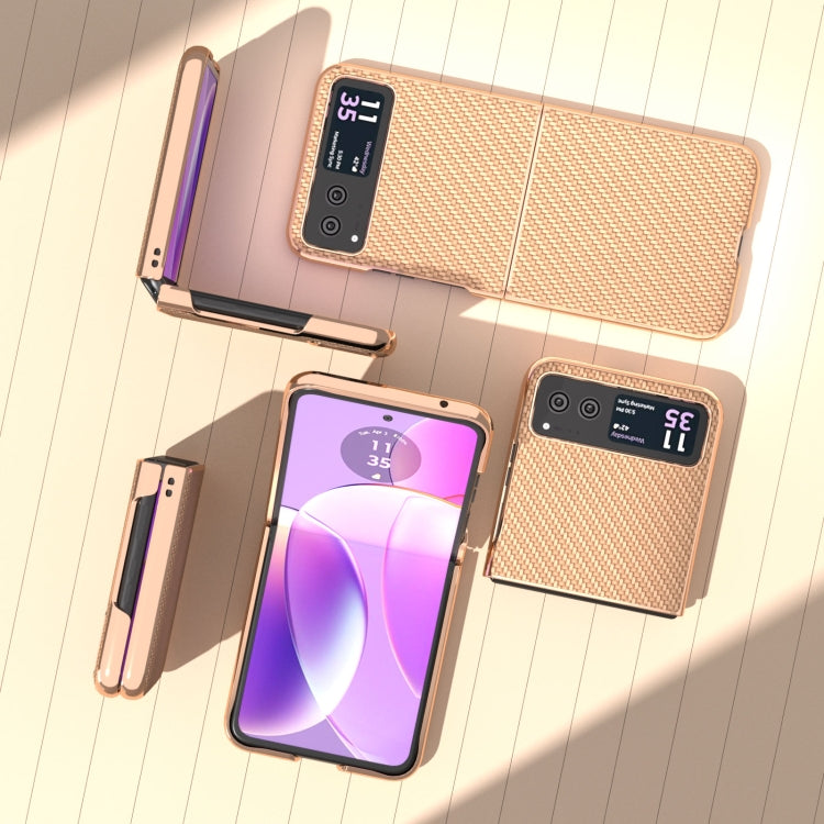Funda para Motorola Razr 40 con Textura de Fibra de Carbono y Galvanoplastia Nano (Dorado)