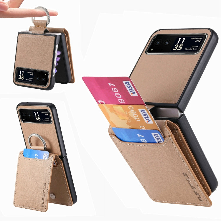 Funda Wallet con Anillo para Motorola Razr 40 Litchi Texture (Caqui)
