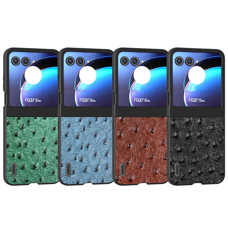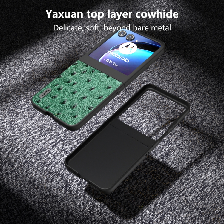 Funda para Motorola Razr 50 Abeel Cuero Genuino Textura de Avestruz (Verde)