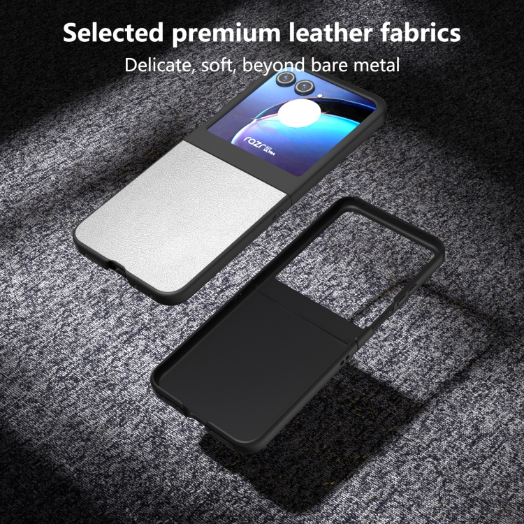Funda para Motorola Razr 50 cobertura total con marco negro de Cuero PU (Plateado)