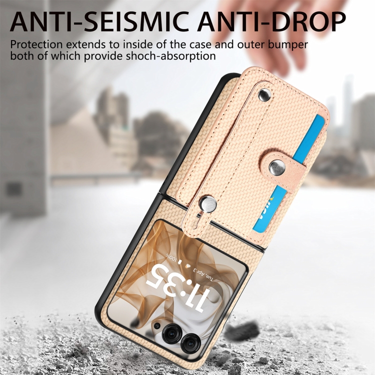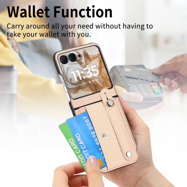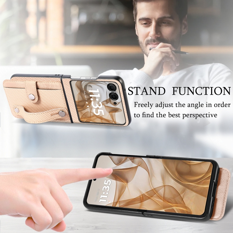 Funda para Motorola Razr 50 con Pulsera Kickstand y Card Wallet Contraportada (Caqui)