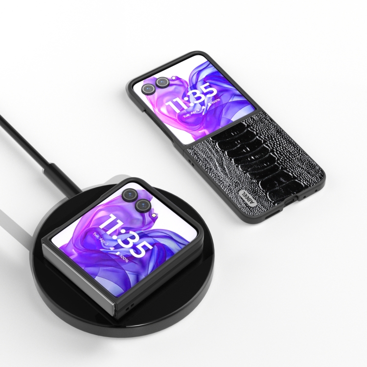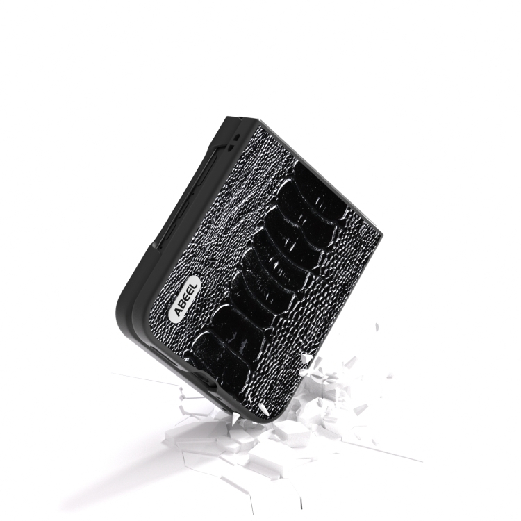 Funda para Motorola Razr 50 Ultra Abeel Serie Weilai de Cuero Genuino (Negro)