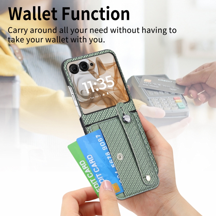 Funda para Motorola Razr 50 Ultra Muñequera Kickstand Card Wallet Contraportada (Verde)