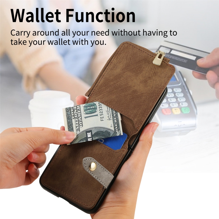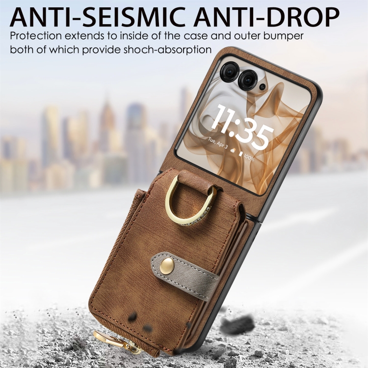 Estuche para Motorola Razr 50 Ultra con Billetera y Cremallera Vertical (Marrón)