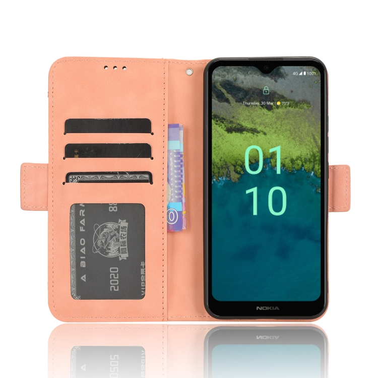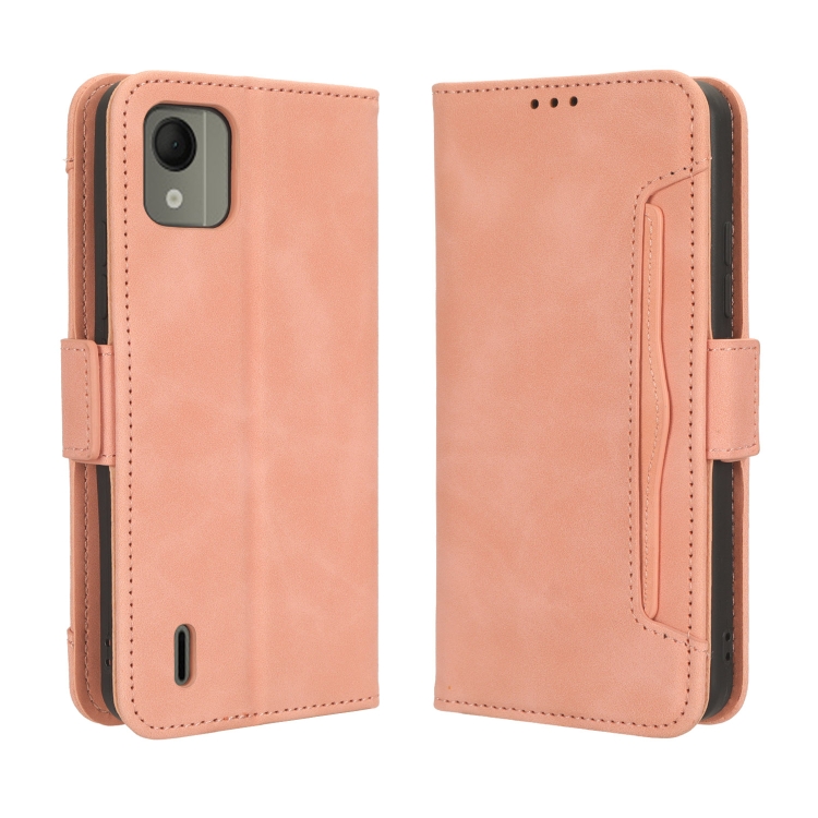 Funda de Cuero para Nokia C110 4G con Skin Feel, Textura Becerro y Ranuras para Tarjetas (Rosa)