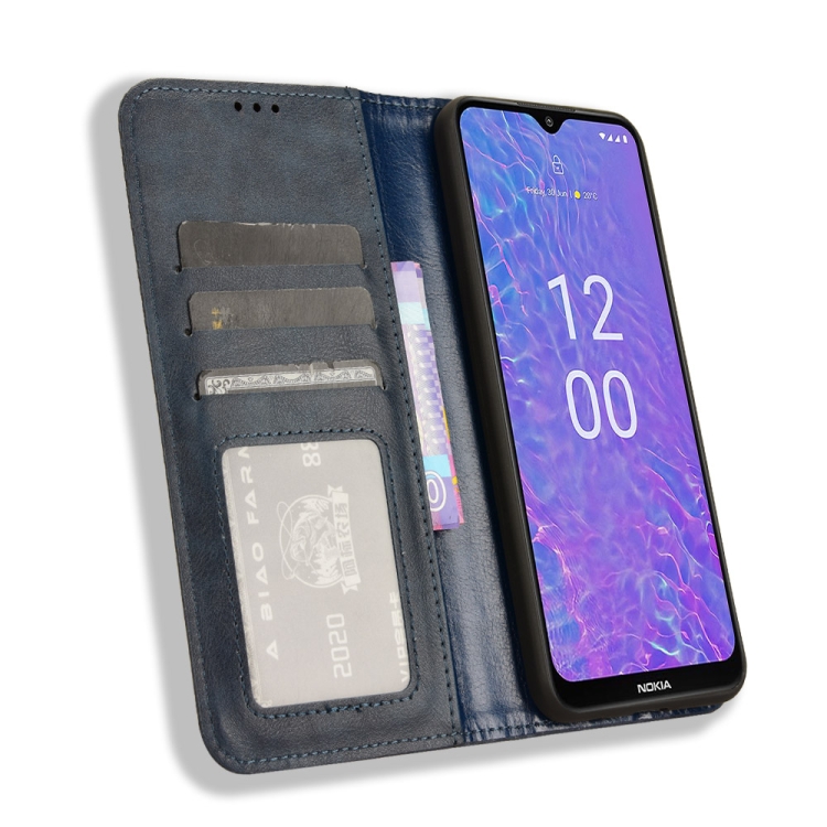 Funda para Nokia C210 de Cuero con Textura Retro y Hebilla Magnética (Azul)