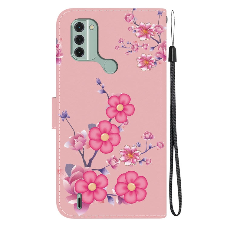 Funda para Nokia C31 de Cuero con Dibujo Coloreado y Textura de Cristal (Flores de Cerezo)