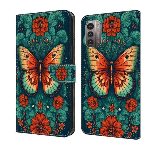 Funda de Cuero para Nokia G21 y G11 con Cristales y Diseño Mariposa de Flores
