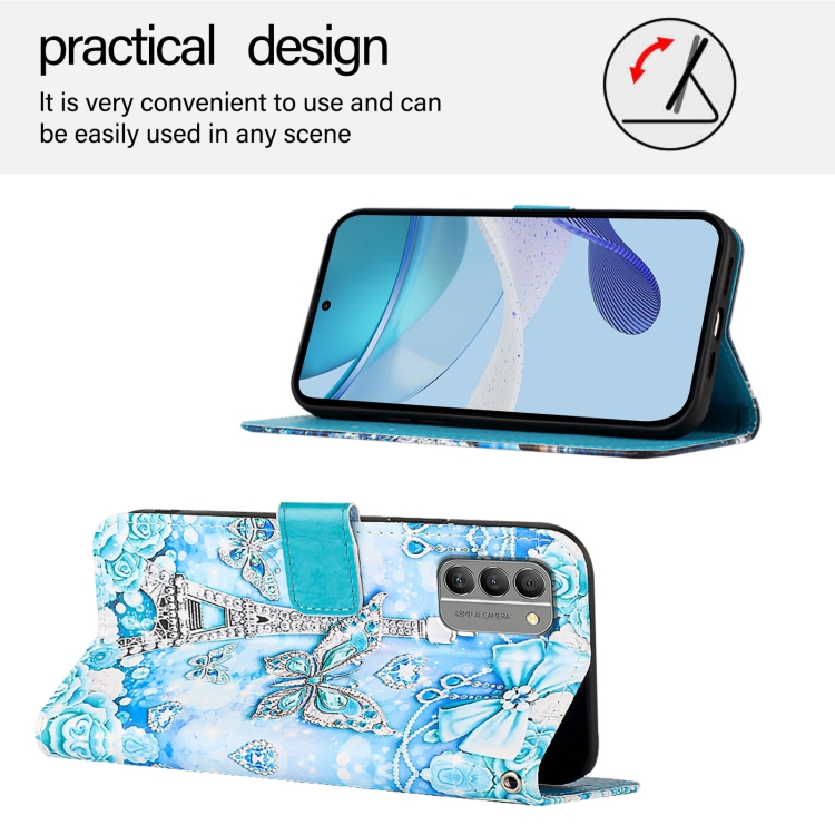 Funda para Nokia G400 de Cuero Tejido Liso con Patrón de Mariposa Torre (Colores)