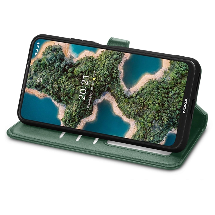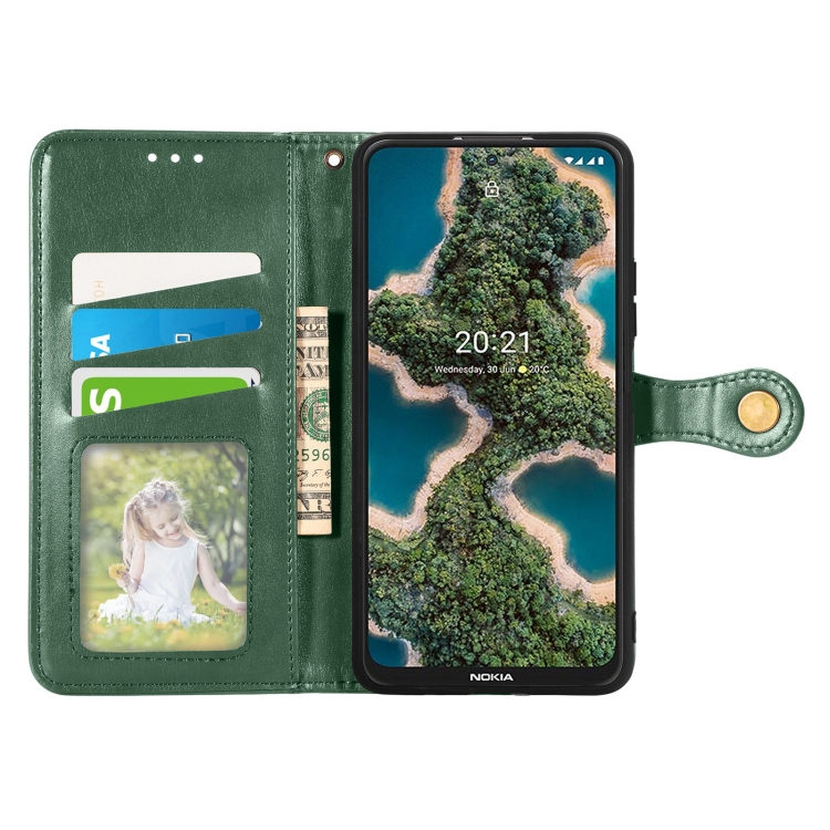 Funda de Cuero para Nokia X10 y X20 con Hebilla Color Sólido Retro (Verde)