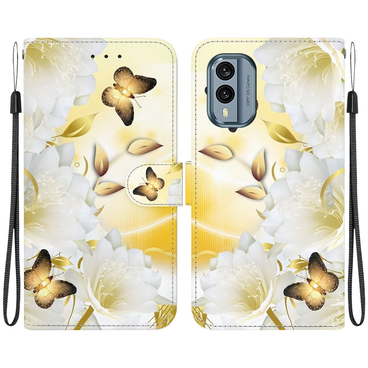 Estuche de Cuero para Nokia X30 con Dibujo Coloreado y Textura de Cristal (Epiphyllum de Mariposa Dorada)