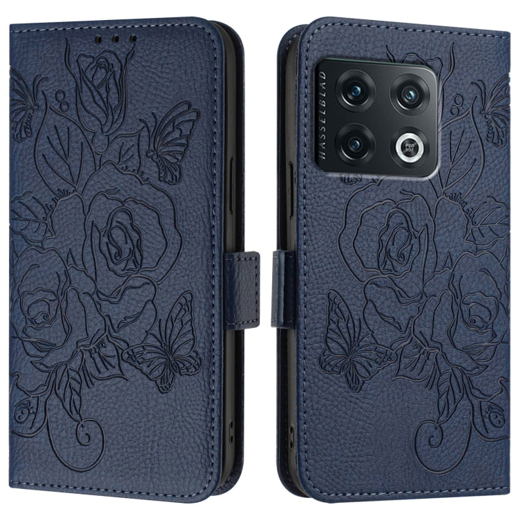 Funda de Cuero Antirrobo RFID para OnePlus 10 Pro 5G con Relieve (Azul Oscuro)