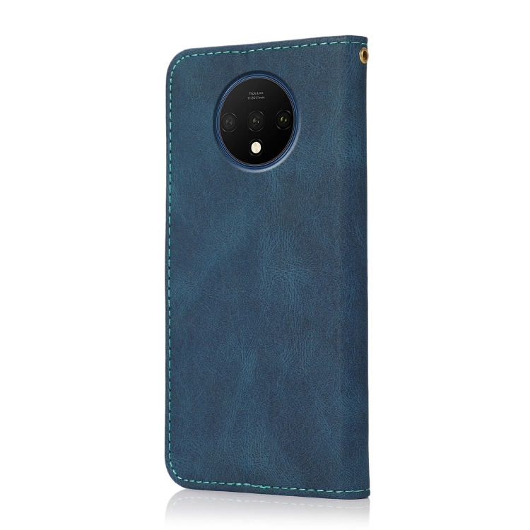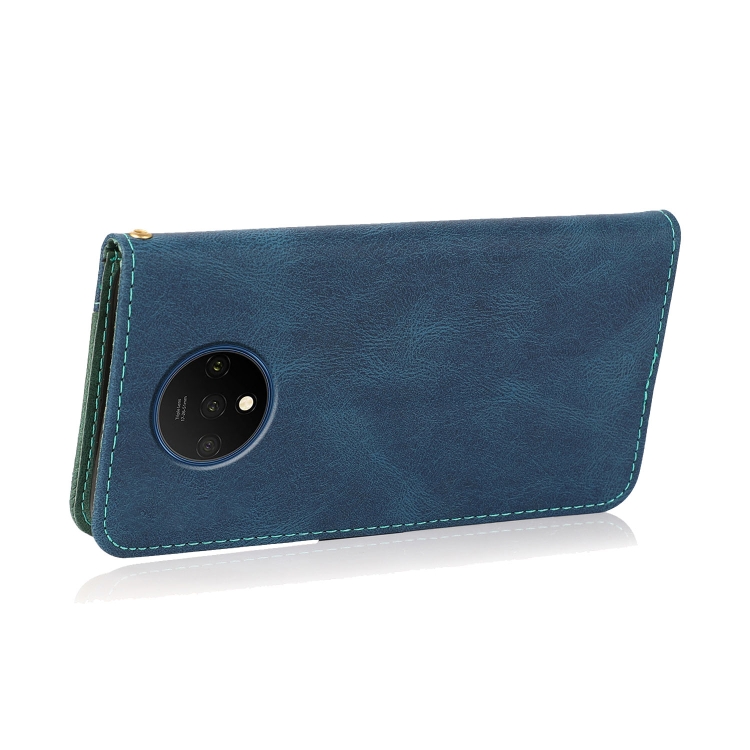 - 1x Funda de Cuero para OnePlus 7T con Costuras de Dos Colores (Azul Verde)