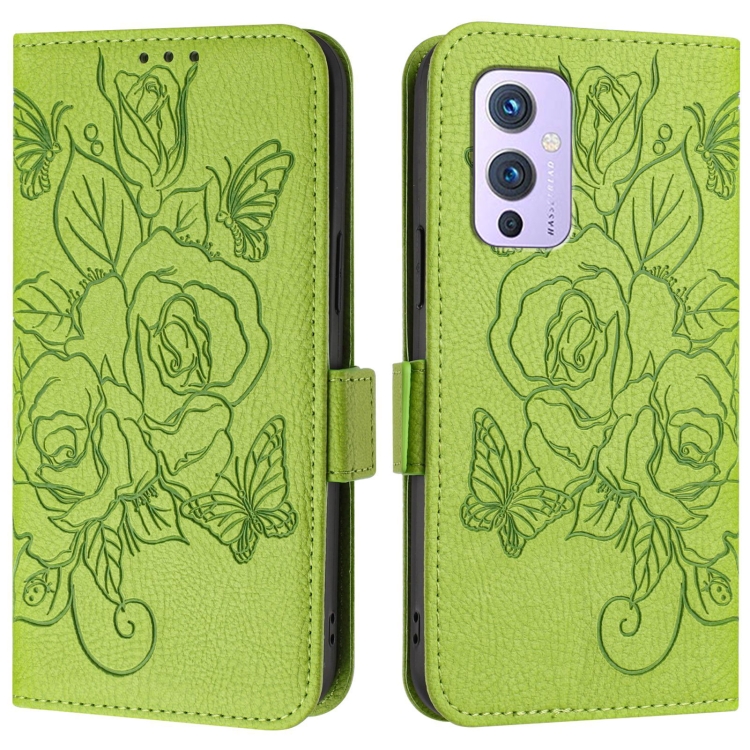 Funda de Cuero Antirrobo RFID para OnePlus 9 con Relieve Rosa (Verde)