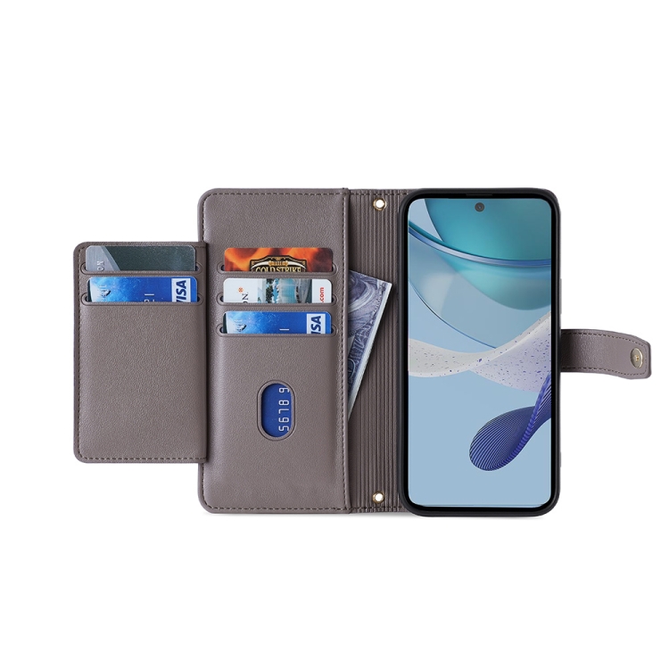 Funda de Cuero para OnePlus Ace 2/11R con Textura Sheep, Cross-Body y Cremallera (Gris)