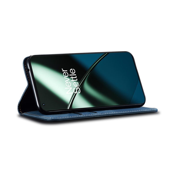 Funda de Cuero Flip para OnePlus Ace 2 5G con Textura Denim (Azul)