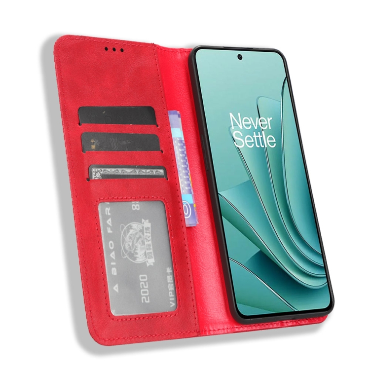 - 1x Funda de Cuero para OnePlus Ace 2V con Hebilla Magnética y Textura Retro (Rojo)