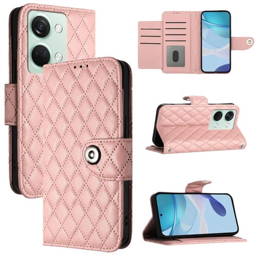 Funda para OnePlus Ace 2V y Nord 3 con Tapa de Cuero, Textura Rómbica y Cordón (Rosa Coral)