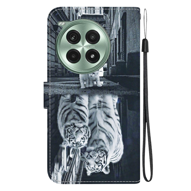 Funda de Cuero para OnePlus Ace 3 Pro con Dibujo Coloreado y Textura de Cristal (Reflejo de Tigre Gato)