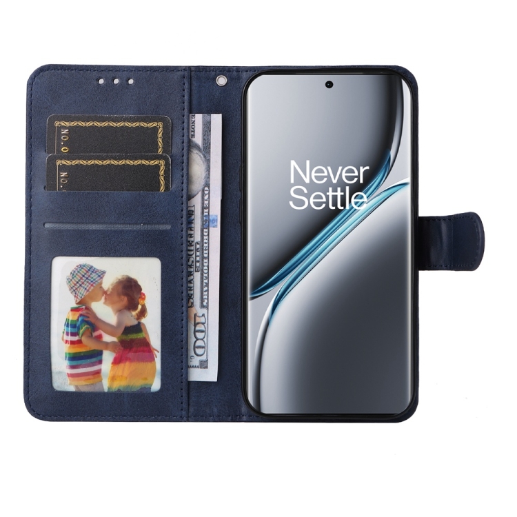 Funda de Teléfono OnePlus Ace 3 Pro Cuero con Tapa Textura de Becerro (Azul)
