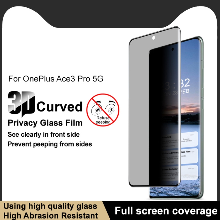 Película Protectora Vidrio Templado 3D Curved Antiespía para OnePlus Ace 3 Pro