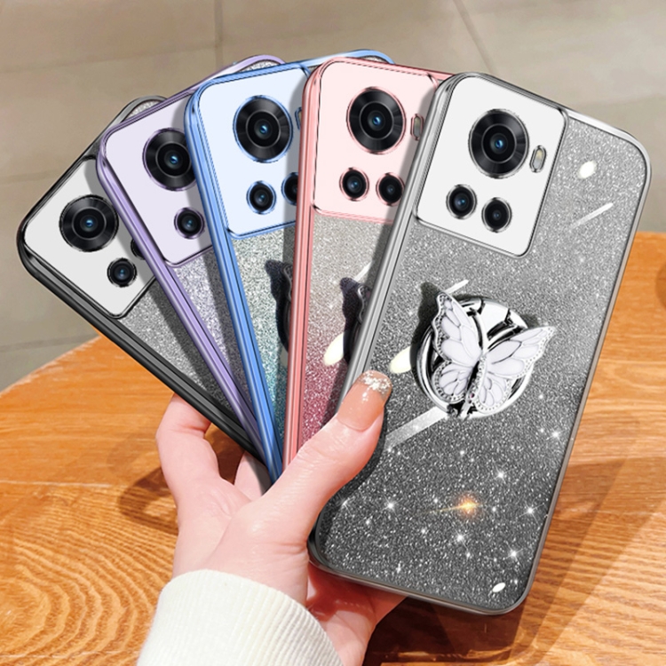 Funda TPU para OnePlus Ace con Soporte de Mariposa y Brillo Degradado (Rosa)