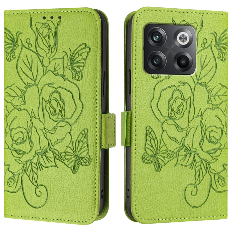 Funda de Cuero Antirrobo RFID para OnePlus Ace Pro 5G / 10T 5G con Relieve Rosa (Verde)