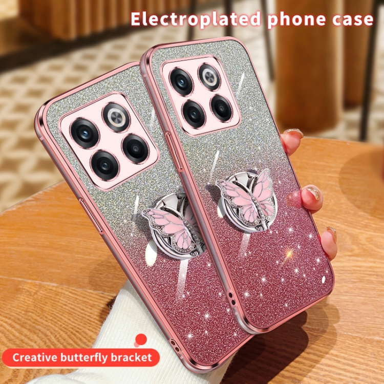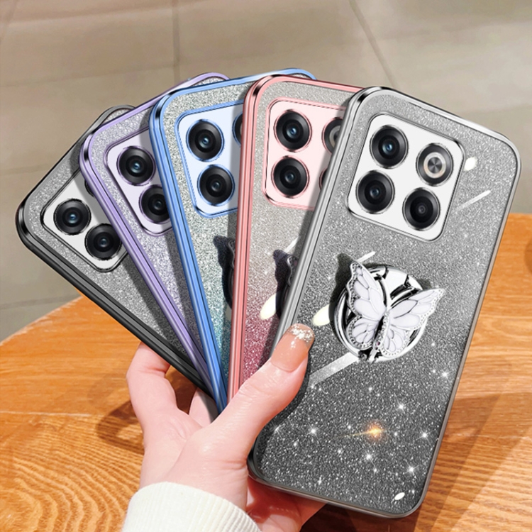 Funda TPU para OnePlus Ace Pro con Soporte de Mariposa y Brillo Degradado (Negro)