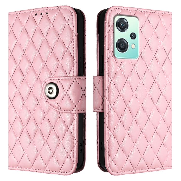 Funda para OnePlus Nord 2 Lite con Tapa de Cuero Textura Rómbica y Cordón (Rosa)