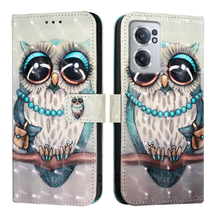 Funda de Cuero para OnePlus Nord Ce 2 5G con Tapa Horizontal y Pintura 3D (Búho Gris)