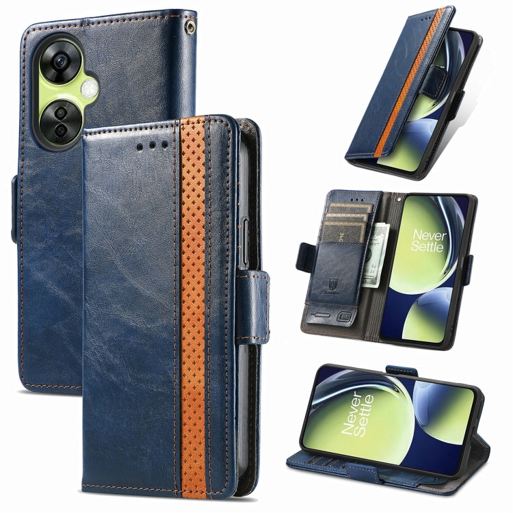 Funda de Cuero Caseneo Splicing con Hebilla Magnética Dual para OnePlus Nord CE 3 Lite (Azul)