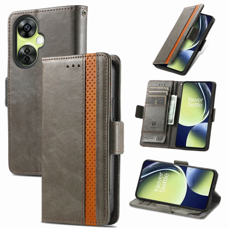 Funda de Cuero Caseneo Splicing Dual Magnetic con Hebilla para OnePlus Nord Ce 3 Lite (Gris)