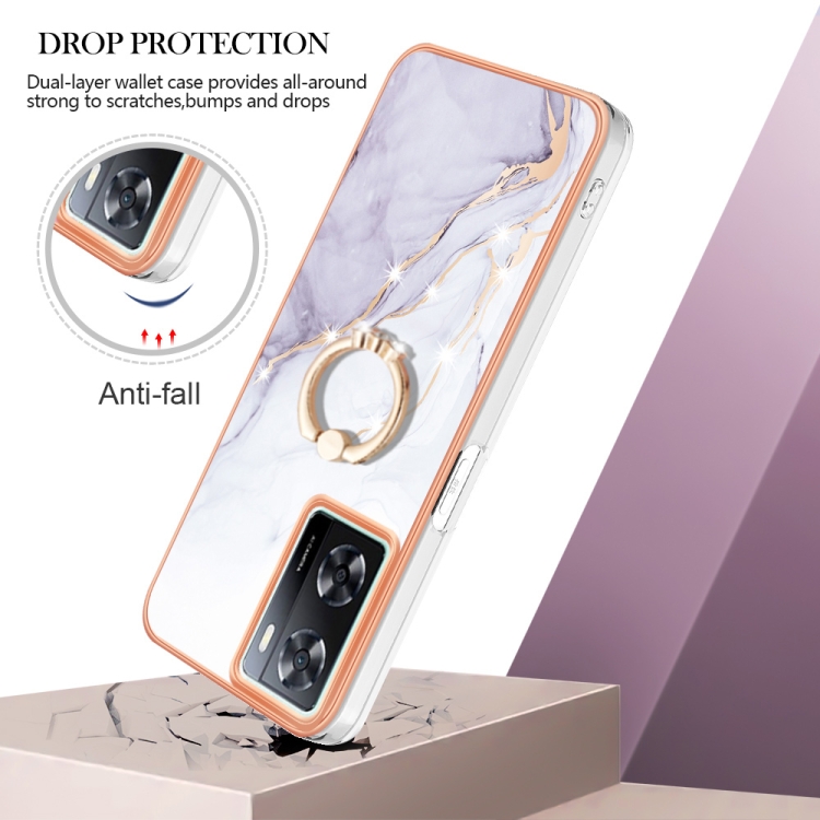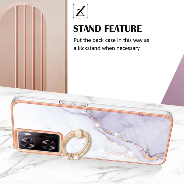 Funda TPU para OnePlus Nord N300 con Galvanoplastia Mármol y Soporte para Anillo (Blanco)