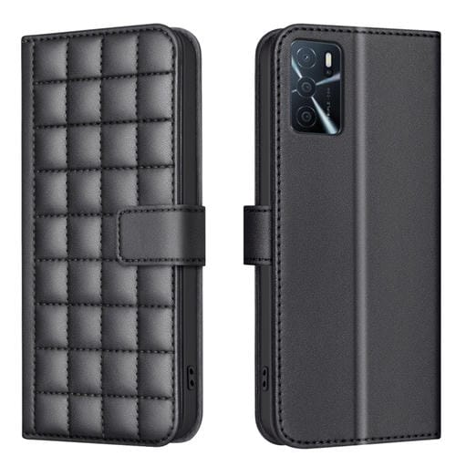 Para Oppo A16 / A16S / A54S / A55 / A54 Funda para Teléfono de Cuero con Textura Cuadrada (Negro)