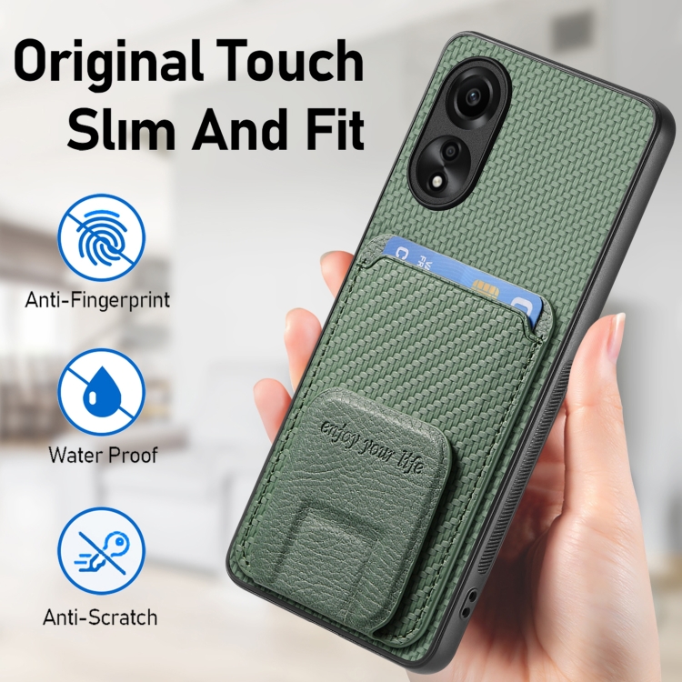 Para Oppo A17 Funda para Teléfono con Soporte Plegable y Bolsa para Tarjetas de Fibra de Carbono (Verde)