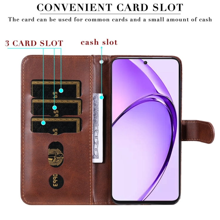 Para Oppo A3 Pro 5G Global / India Fashion Becerro Textura Cremallera Funda de Cuero para Teléfono (Marrón)