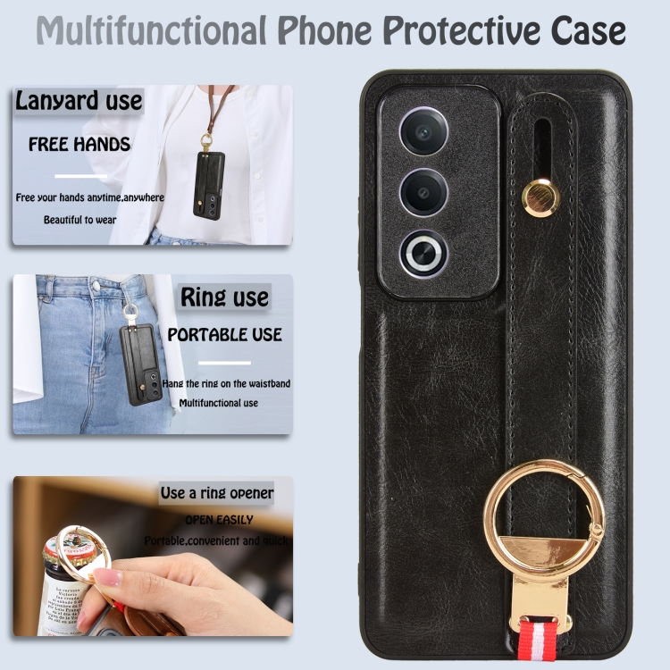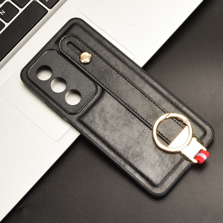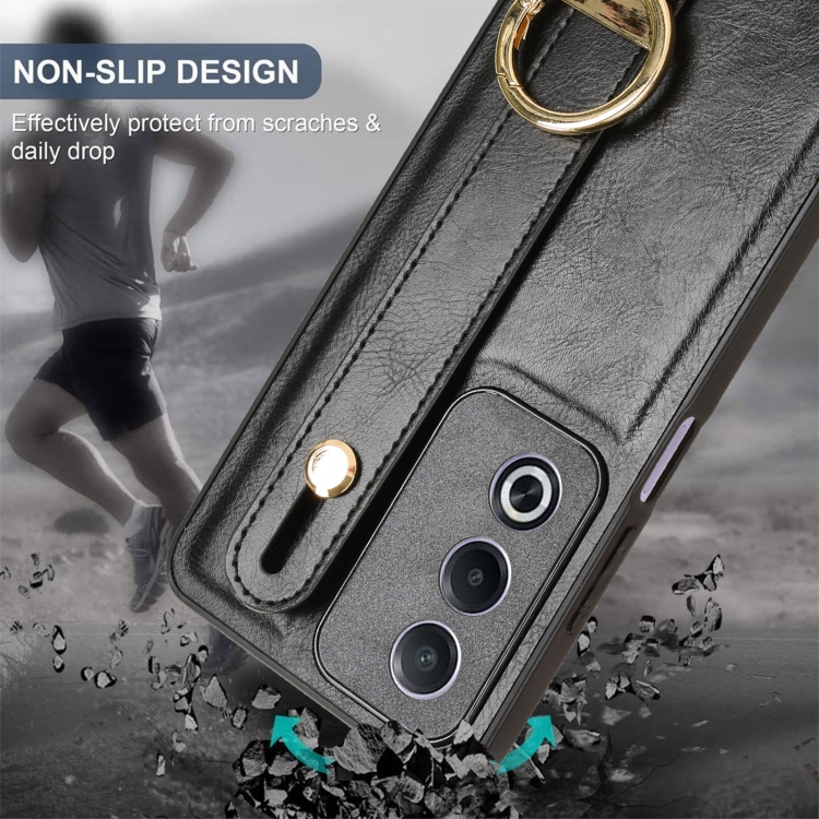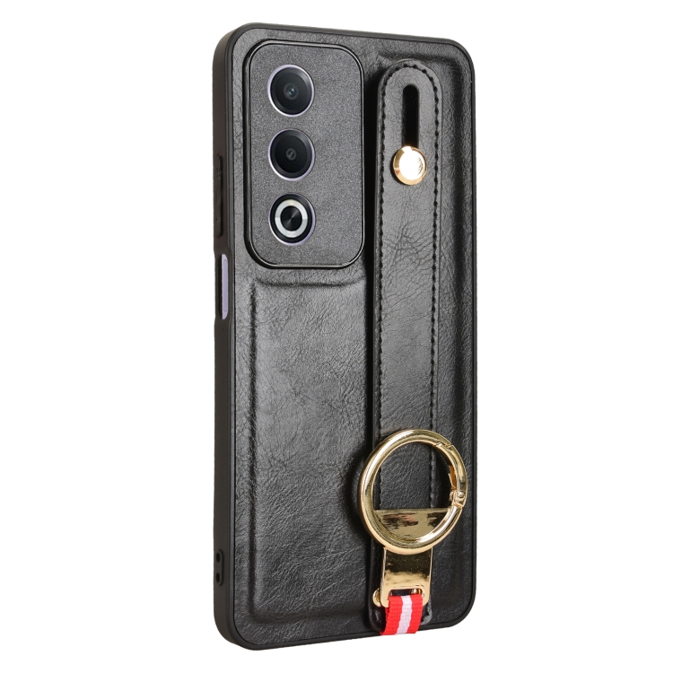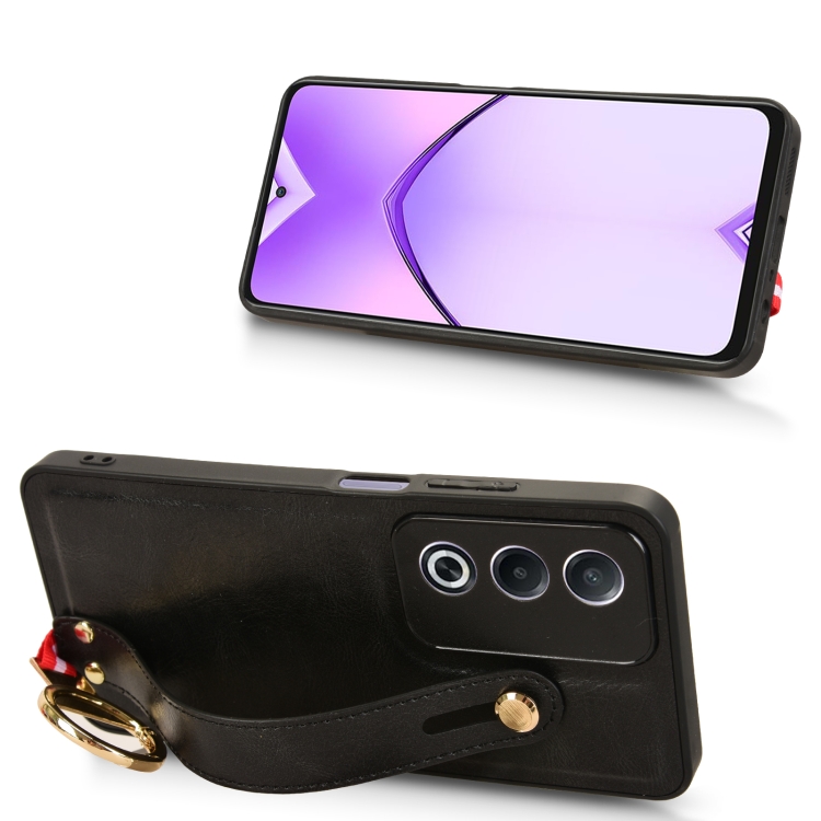 Para Oppo A3 Pro India Funda Trasera de Cuero para Teléfono con Pulsera (Negro)
