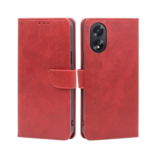 Para Oppo A38 4G / A18 4G Funda para Teléfono de Cuero con Tapa con Hebilla y Textura de Pantorrilla (Rojo)