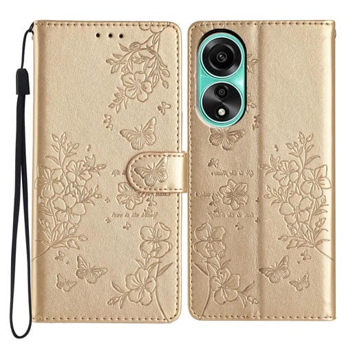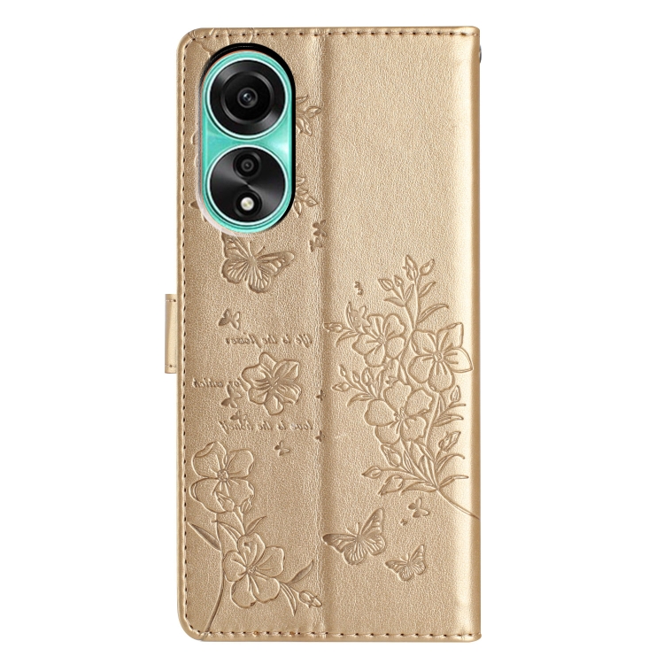 Para Oppo A38 4G / A18 Funda para Teléfono de Cuero con Relieve de Flor de Amor y Mariposa (Dorado)