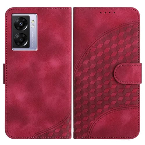 Para Oppo A57 5G / A77 5G / A57 4G Global Yx0060 Funda de Cuero para Teléfono con Relieve y Cabeza de Elefante con Cordón (Rojo Rosa)