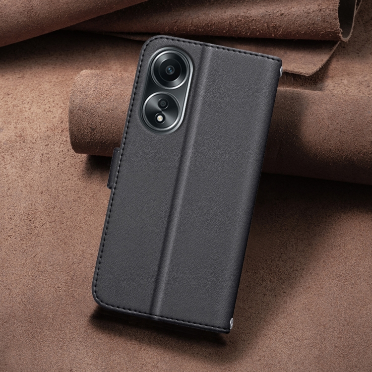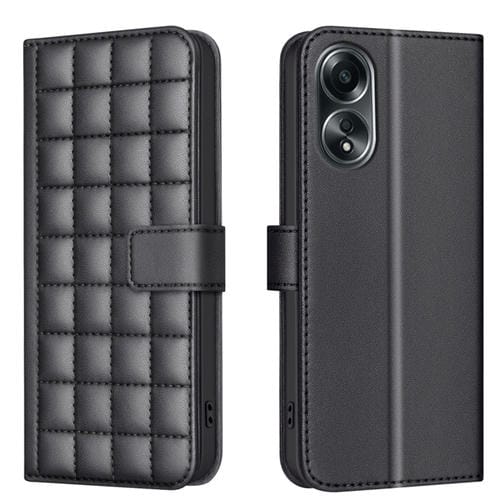 Para Oppo A58 4G Funda de Cuero con Textura Cuadrada (Negro)